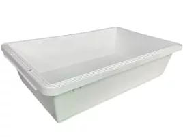 トロ舟(トロ箱・プラ舟とも呼ばれる)は、ポリプロピレン製の頑丈なプラスチック容器です。建設用資材として長年使われてきた経緯から、屋外環境への耐候性・耐久性が非常に高く設計されています。メダカ飼育に転用されるようになったのは、その独特の形状がメダカの習性に合っているからです。水深が浅く表面積が広い形状は、水面からの酸素供給量が多くなるため、フィルターなしでも安定した溶存酸素量を保てるという大きなメリットがあります。