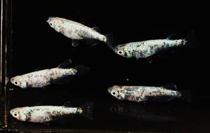 黒系メダカでは従来ラメが乗りにくいとされていましたが、その常識を打ち破って全身にびっしりとラメが乗ります 。粒の大きさが揃い体全体に均一に分布する個体が高評価とされています 。[1][4]