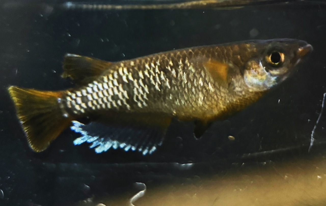 オランジェは、愛媛県の垂水政治氏が2024年5月にリリースしたメダカで、黒×オレンジの茶黒体色+ラメ+ロングフィンを目指して作出されました。