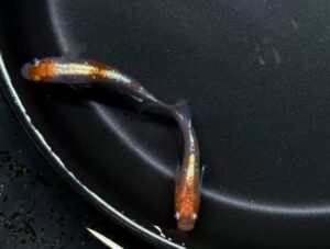 紅白メダカはほとんどが白いメダカか赤いメダカとして生まれてきます。白と赤が出ているメダカは半分以下で、そのうち紅白模様が鮮やかな美しいメダカはごくわずかです。