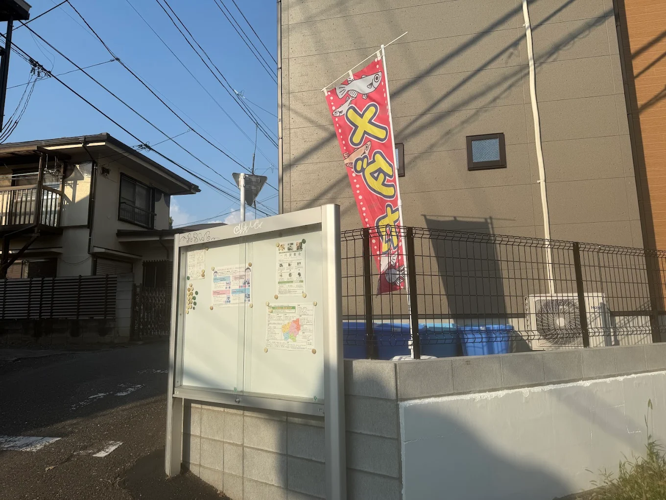 メダカののぼりが目印です。隣のセブンイレブン・ケンタッキー等にご駐車ください |